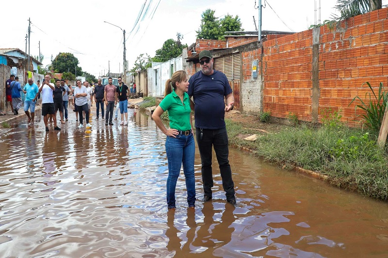 A prefeita de Várzea Grande, Flávia Moretti, esteve no domingo (8), no bairro Joaquim Curvo, na região do Cristo Rei, para acompanhar de perto os impactos causados pelas fortes chuvas que assolaram a cidade neste fim de semana e verificar a situação de uma via que foi alagada após o entupimento de uma manilha de drenagem. A ocorrência fez com que a água invadisse residências e trouxe transtornos recorrentes aos moradores da localidade.